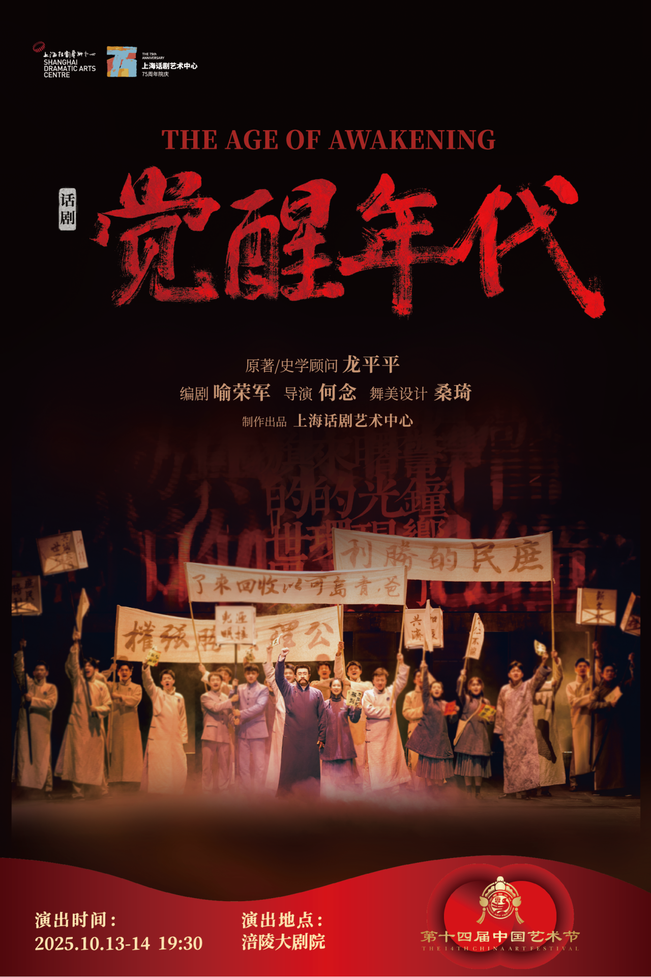 上海话剧艺术中心制作出品的话剧《觉醒年代》入围“第十八届文华奖”终评提名名单,将于10月13日至14日赴重庆参加“第十四届中国艺术节”演出,角逐我国专业舞台艺术领域政府最高奖——“文华奖”。