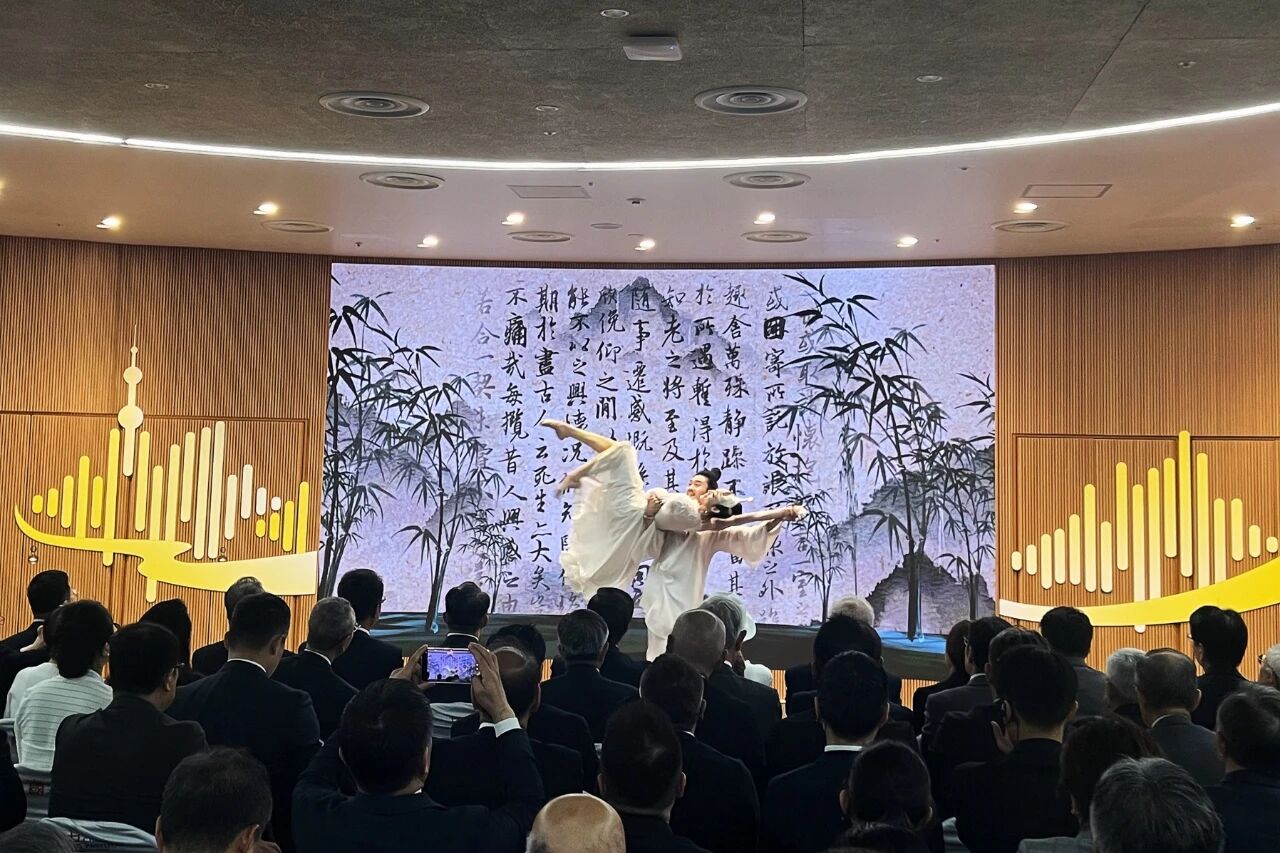 演出现场,上海民族乐团演奏家带来国风雅乐《醉山水》,上海歌剧院舞剧院首席舞者带来原创舞剧《永和九年》片段,不仅演绎了中华文化精髓,更与本届世博会“人与自然和谐交融”命题遥相呼应。