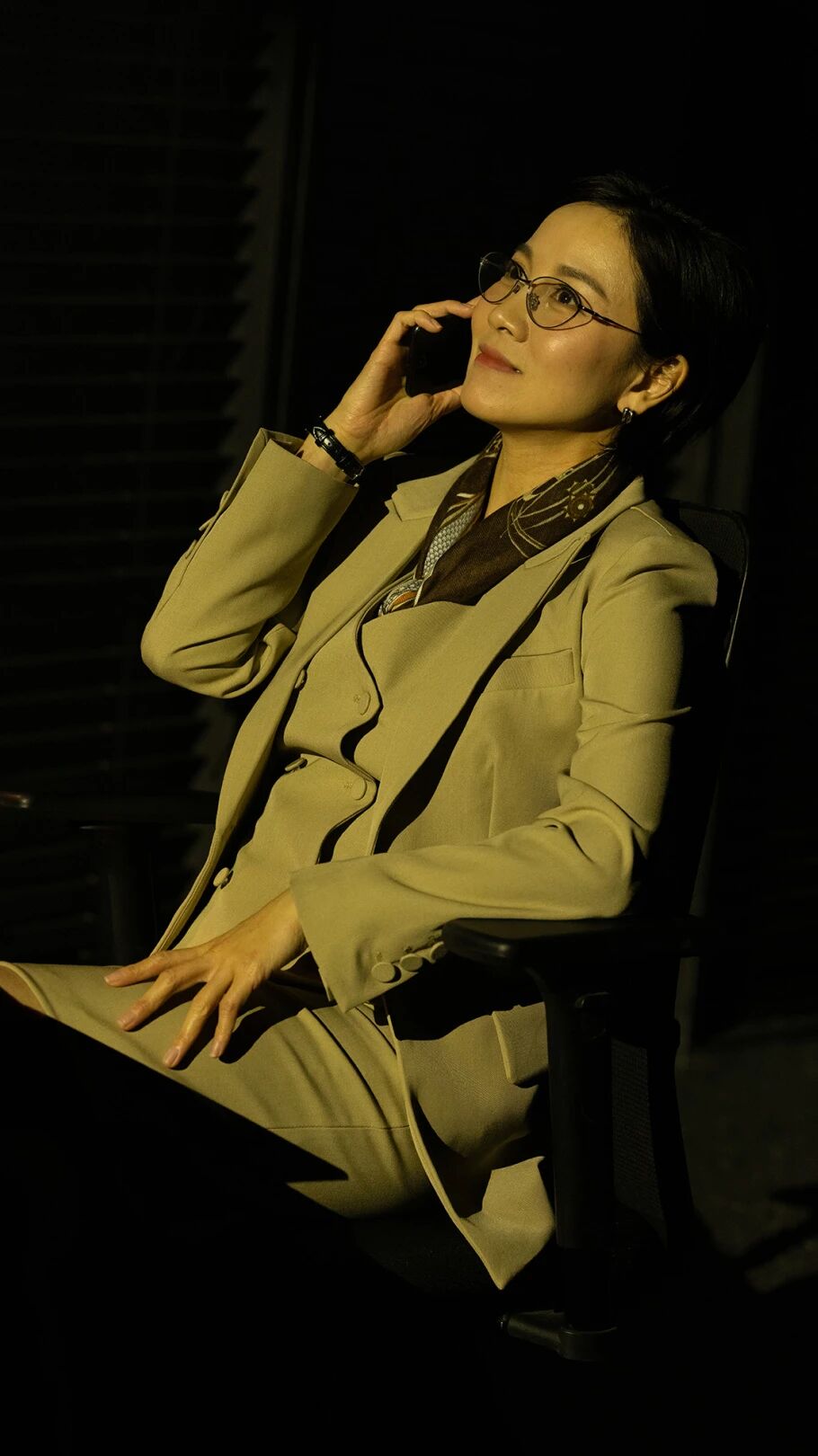 舞台视觉上,该剧别具匠心采用了以黑色为主基调的极简风格。整体空间看似规整,却能随着剧情流动,自如地转换为办公室、家庭等不同场景,营造出一个既抽象又充满想象张力的多元表演空间。