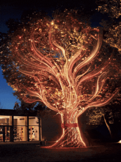 除了呈现千年古树的光影叙事外,幻维数码更以跨年夜为契机,打造了一场极具温度的沉浸式光影互动体验。宾客们于光影流转的古树下亲身参与这场跨年祈福,借由光、树、人三者间的共鸣与交融,完成一次自然、历史与心意的诗意连结。