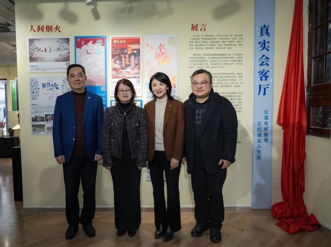 随后,在纪录片前辈和新一代纪录片人的共同见证下,黄浦区委常委、宣传部部长钟璟,上海广播电视台副台长、副总编辑尹欣,永业集团党委书记、董事长戴金梁和真实传媒副总经理周全共同为“真实会客厅”纪录片影像展的展言墙揭幕。