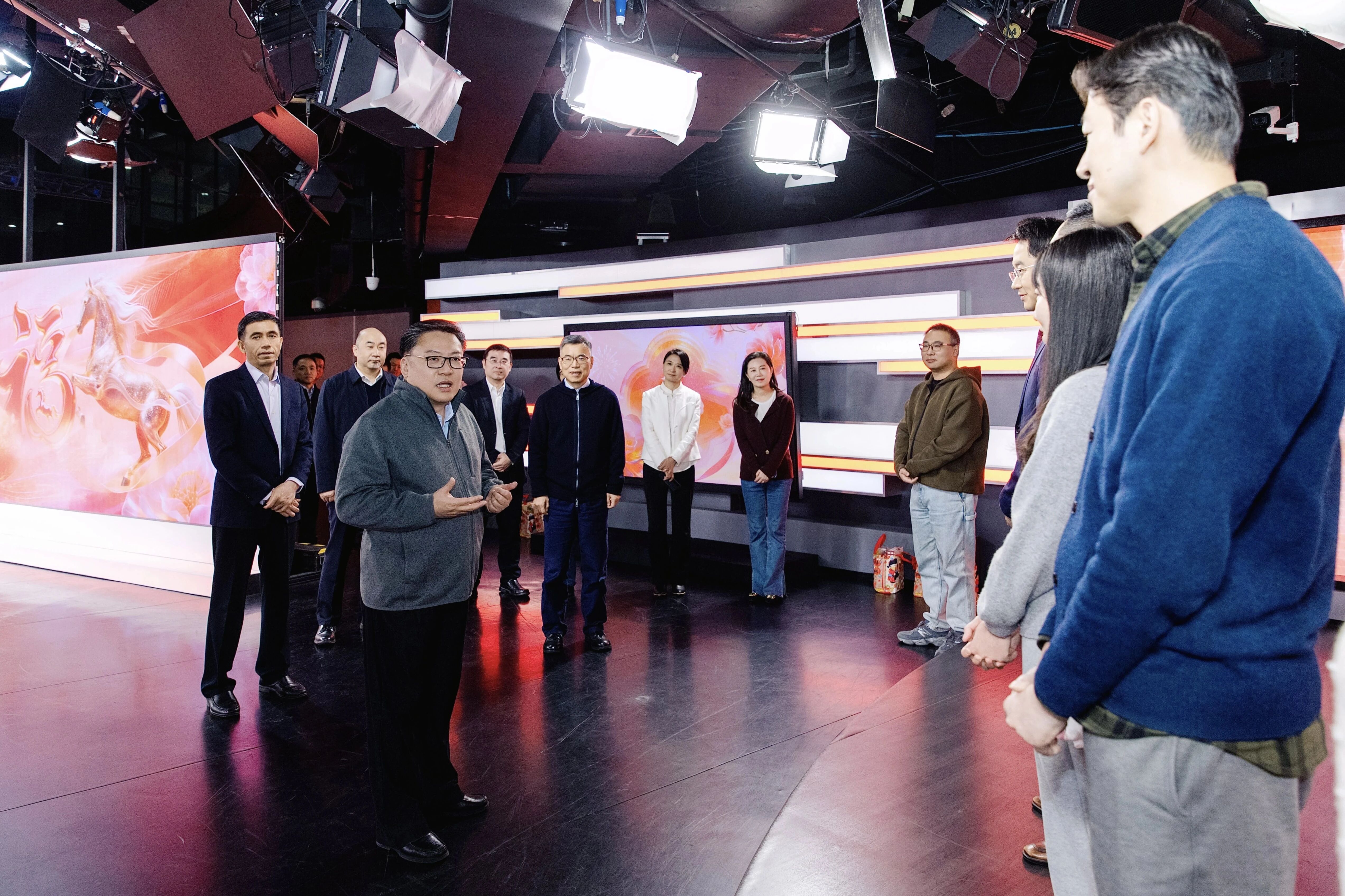 在上视大厦4楼演播室,赵嘉鸣与刚刚结束《新闻夜线》直播的编播团队、技术团队和当班主持人进行了亲切交流,对大家的辛勤工作表示慰问。他对2025年东方卫视频道触达全国6.2亿人、新闻综合频道触达本地1722万人的传播质效表示了肯定,并认真听取了春节期间“超大城市里的超级工程、海派非遗贺新岁、过年忙点啥、年味主理人”等特色节目介绍,仔细观看了春节期间的电视视觉焕新包装。他勉励大家要坚持“新闻立台”,更好体现主流媒体的价值追求和责任担当,让新闻有态度、有锐度、有温度,不断提升主流媒体的传播力、影响力、引导力和公信力。