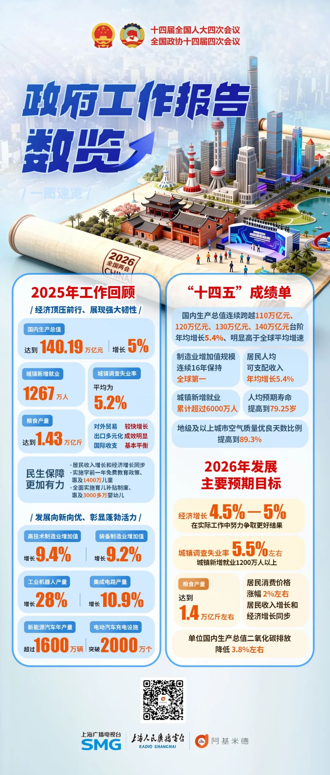 2026全国两会火热进行中。今日(3月5日)上午,十四届全国人大四次会议开幕,政府工作报告热辣滚烫出炉,瞬间成为全民关注焦点。