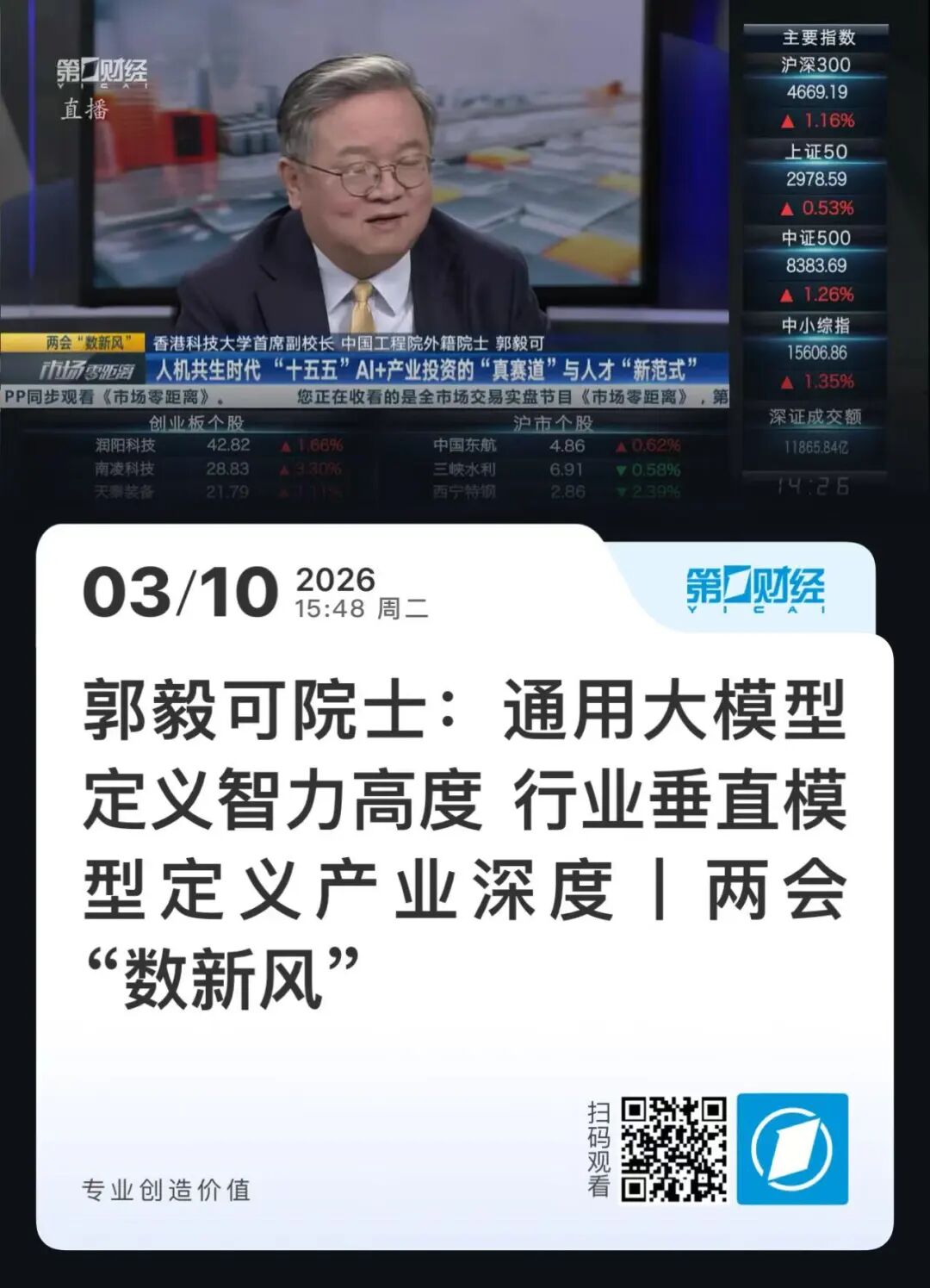 第一财经《两会“数新风”》系列直播,以专业财经视角全方位展现我国未来产业从技术突破到产业领跑的清晰蓝图。3月5日至3月10日,推出聚焦未来产业、新质生产力、“十五五”布局核心方向,以“院士权威解读+投资人实战研判”为特色,覆盖脑机接口、具身智能、AI+产业、低空经济四大黄金赛道,打通政策、科技、产业、资本闭环,成为洞察数智时代机遇的前沿窗口。