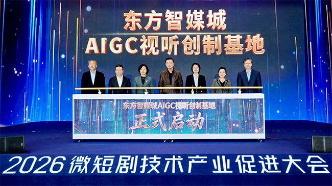 以“智引未来·链聚生态”为主题的2026微短剧技术产业促进大会日前在东方智媒城举行。本次大会由上海市文化和旅游局、上海市广播电视局、上海市闵行区人民政府指导,上海市网络视听行业协会、东方明珠新媒体股份有限公司联合主办。活动紧扣国家文化数字化战略及广电总局“微短剧+”行动计划,旨在落实闵行区微短剧产业专项政策,推动人工智能与网络视听产业深度融合。