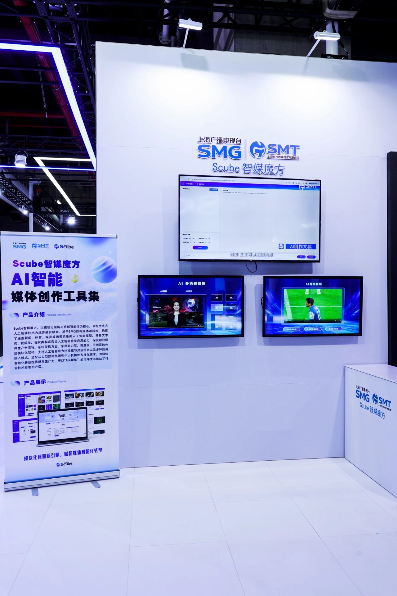 作为SMG主动拥抱人工智能变革的标志性成果,“AI多语种播报”“AI赛事新闻”两大应用同步展出,全景呈现了媒体融合从技术赋能到体系重塑、从局部试点到规模应用的跨越式发展。