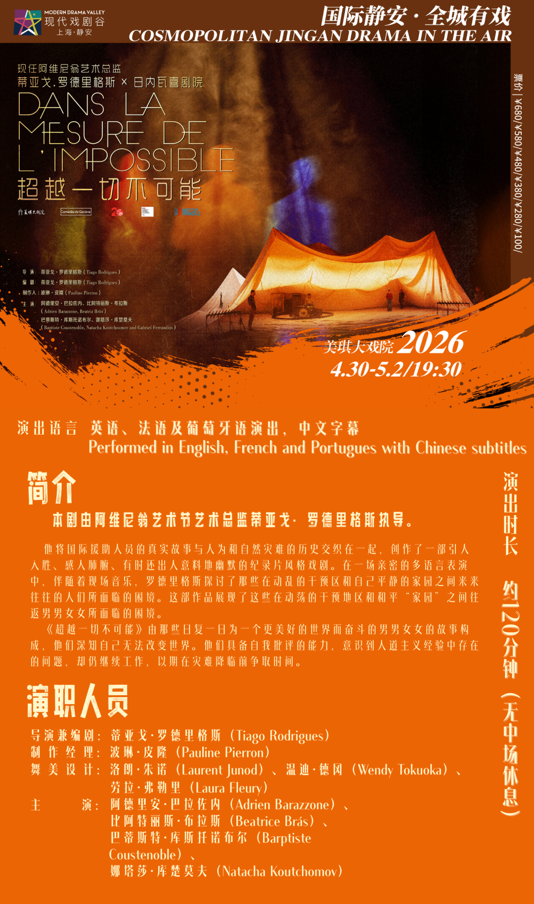 4月23日至5月31日,2026上海·静安现代戏剧谷即将如约而至。本届“名剧展演”板块,以时代为主题,以多元为视野,汇聚全球21部佳作,集中呈现八大系列近百场演出。