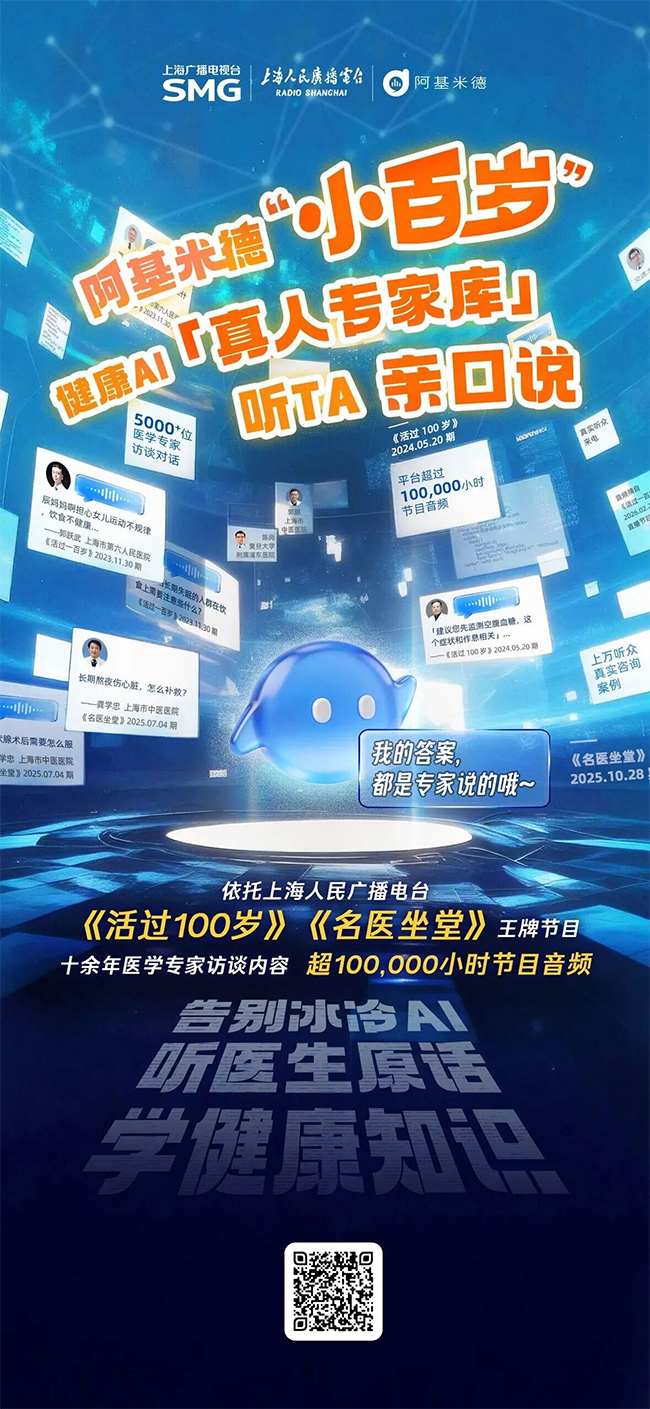 “小百岁”的诞生,离不开上海人民广播电台王牌健康节目《活过100岁》《名医坐堂》的十余年沉淀。作为上海人民广播电台的健康科普节目,《活过100岁》《名医坐堂》已累计邀请数千位三甲医院名医、行业专家做客直播间,聚焦慢病调理、日常养生、急症防护、营养膳食、心理疏导等全维度健康问题,用接地气的对话、专业严谨的解读,成为万千听众信赖的“空中健康顾问”。