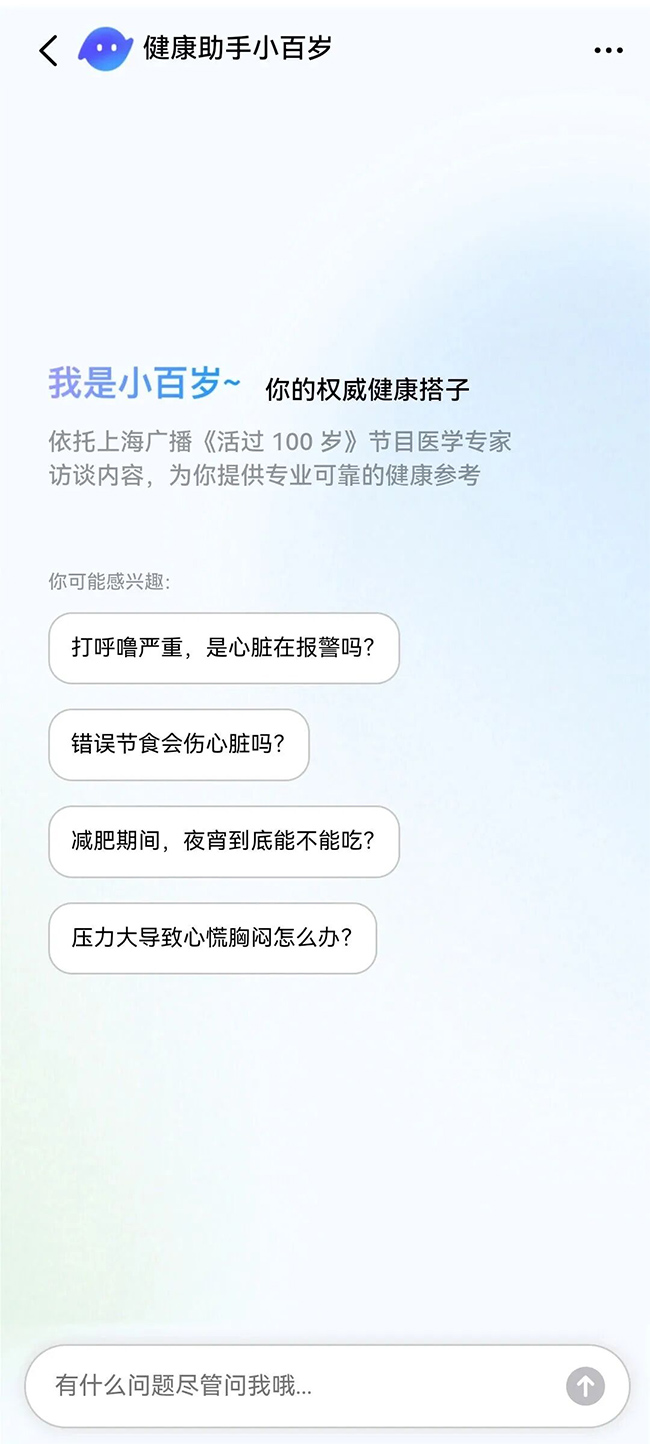 “小百岁”不想做冰冷的AI工具,只想做你身边有专业、有声音、有温度的健康伙伴,陪你把健康融入日常,稳稳迈向百岁人生。