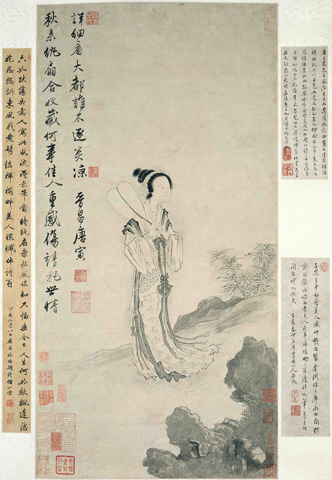 画中仕女可不是路人甲,正是西汉才女班婕妤!当年她被汉成帝冷落,写下“常恐秋节至,凉风夺炎热”,把自己比作秋扇,凉了就被闲置。唐伯虎画她,纯属“同是天涯沦落人”!他本是解元之才,却因科场案被剥夺功名,仕途尽毁,借班婕妤的“秋扇之悲”,写世态炎凉。
