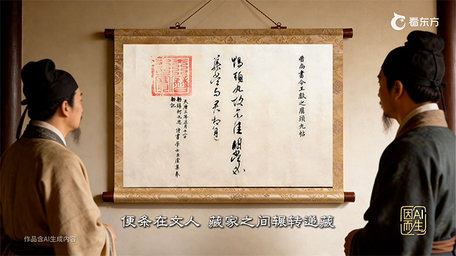 中国首部AIGC文物创意系列微短剧《探宝上博·百物看中国——因AI而生》正在东方卫视、看东方APP、看看新闻APP等平台持续热播。今天,邀您共赏第19集《行书鸭头丸帖卷》。